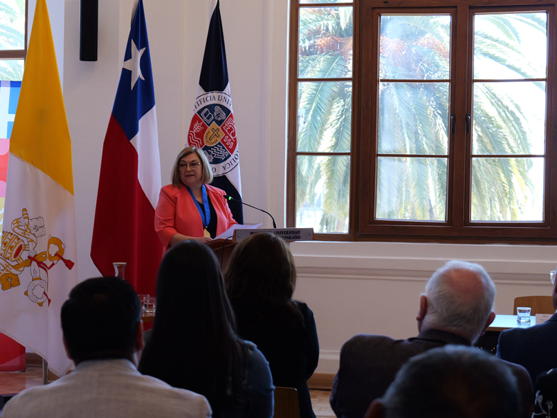 La ceremonia fue encabezada por el Gran Canciller y Obispo de Valparaíso, Monseñor Jorge Vega; el rector Nelson Vásquez; y la decana de la Facultad de Ciencias Económicas y Administrativas, María Teresa Blanco, junto a autoridades universitarias, familiares, colegas y exalumnos de la académica distinguida.