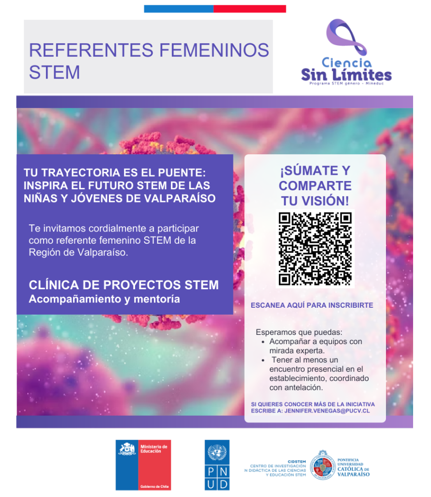 En la Región de Valparaíso, la implementación estará a cargo del Centro de Investigación en Didáctica de las Ciencias y Educación STEM (CIDSTEM) de la PUCV, que liderará la estrategia “Encuentros Sin Límites”. Esta contempla una serie de instancias de interacción entre estudiantes, referentes femeninos en STEM y sus pares, generando espacios de diálogo, inspiración y aprendizaje colaborativo.
