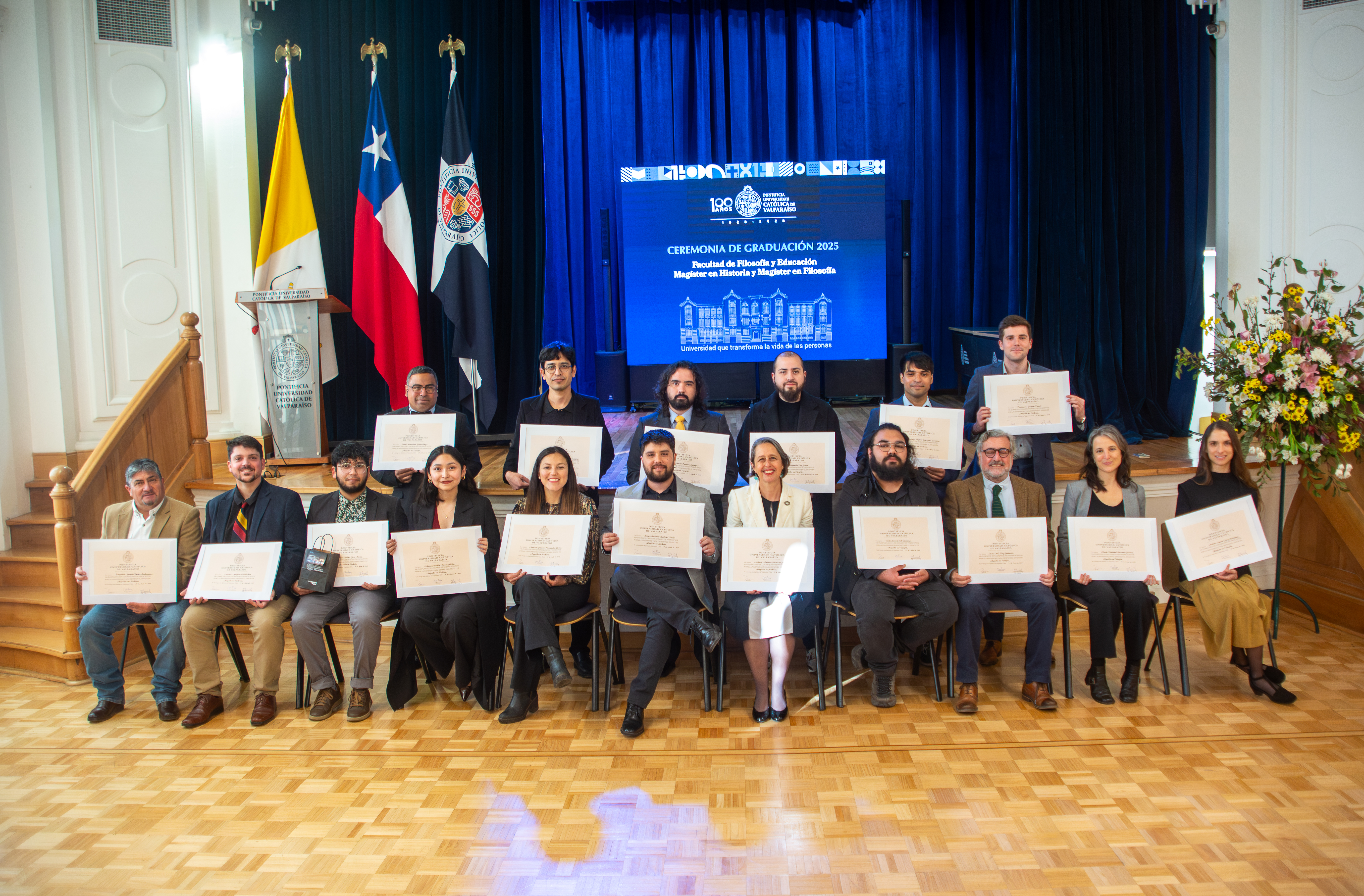 El viernes 26 de septiembre, se realizó la Ceremonia de Graduación de los programas de Magíster en Historia y Magíster en Filosofía de la PUCV. La actividad reunió a académicos, estudiantes y familias, quienes acompañaron a las y los graduados en este importante hito académico.