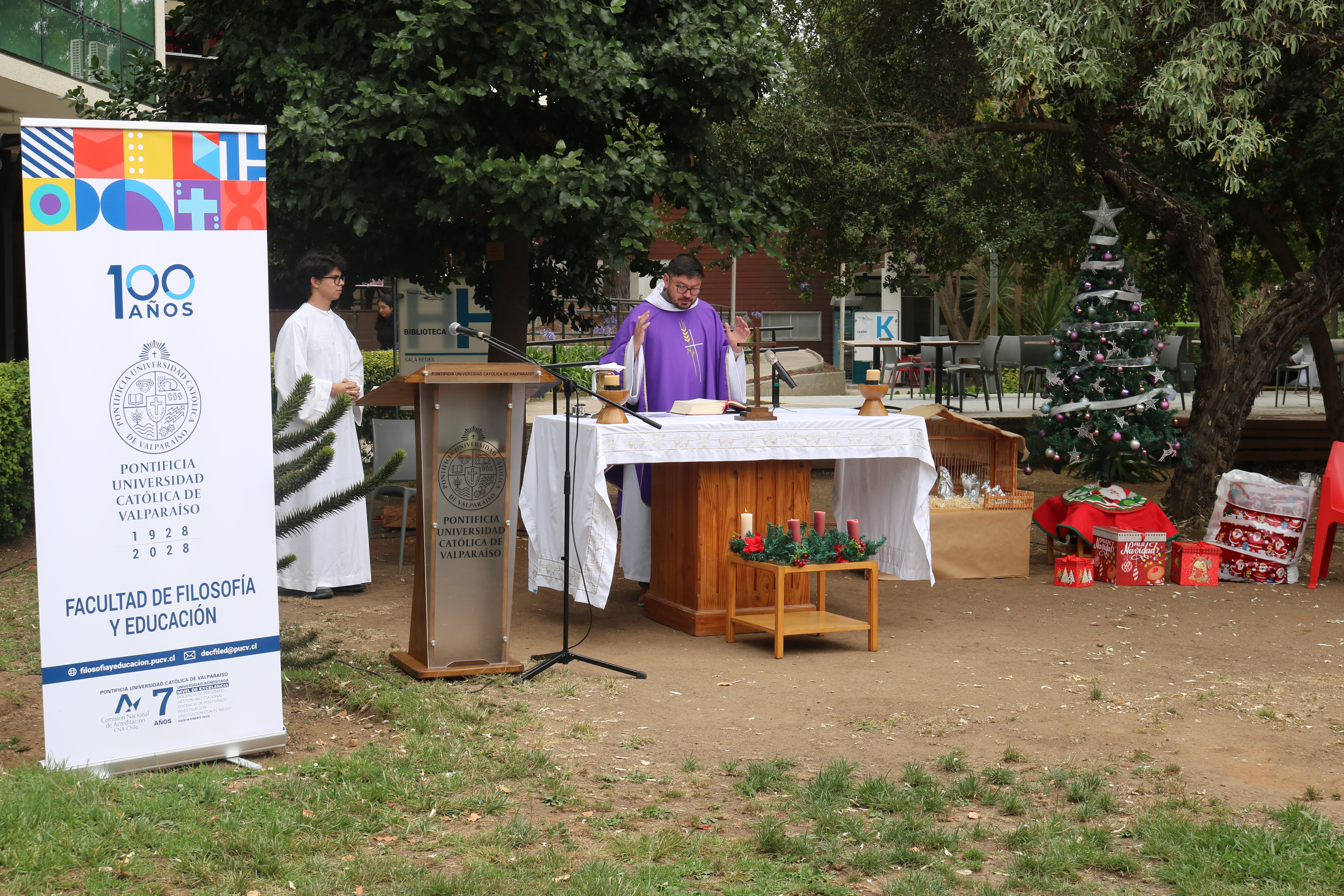 Finalmente, Patricio Lombardo Bertolini, académico del Instituto de Filosofía PUCV, destacó el sentido del encuentro. “Esta es una actividad muy bella porque reúne a la comunidad en un tiempo muy especial. Fue significativo ver a los niños acercarse de manera tan natural a recibir su regalo. Yo creo que lo más importante es no olvidar el sentido de estar en paz, en comunidad y, por sobre todo, recordar que estamos celebrando el nacimiento de Jesús”, finalizó el académico.