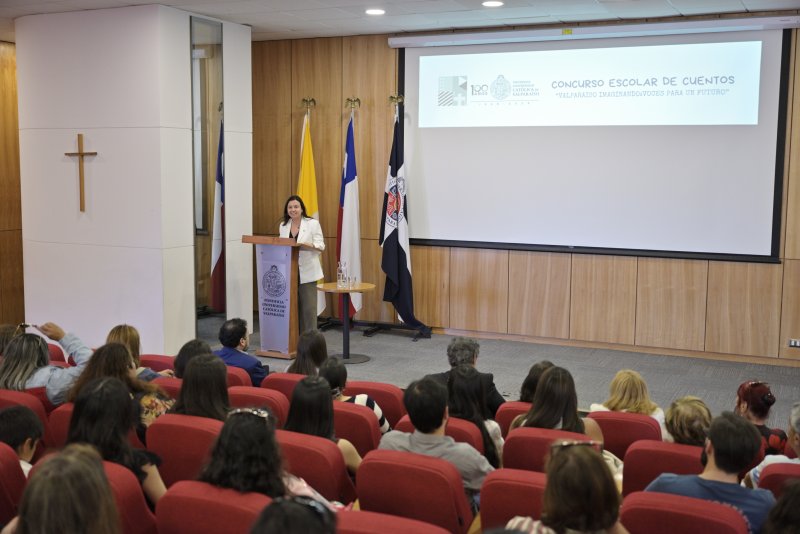 La Pontificia Universidad Católica de Valparaíso reconoció a cerca de 30 estudiantes de distintos establecimientos de la región durante la premiación del Concurso Literario “Valparaíso imaginado: Voces para un futuro”, en una ceremonia realizada en la Casa Central que contó con la presencia de autoridades universitarias y representantes del Sistema de Bibliotecas de la PUCV.