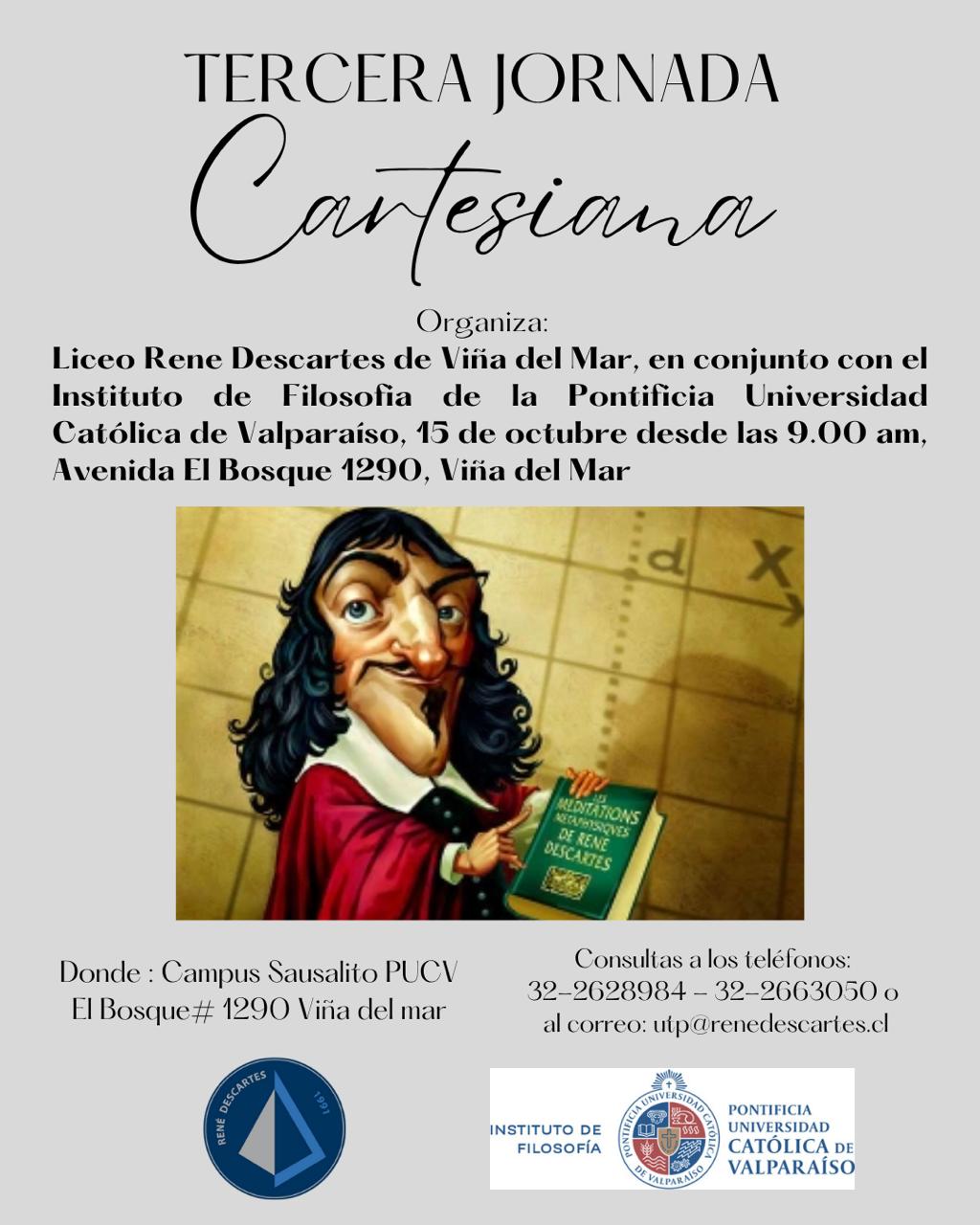 El próximo miércoles 15 de octubre de 2025, a las 9:00 horas, se realizará la III Jornada Cartesiana en el Aula Media del Campus Sausalito de la Pontificia Universidad Católica de Valparaíso (Av. El Bosque 1290, Viña del Mar).